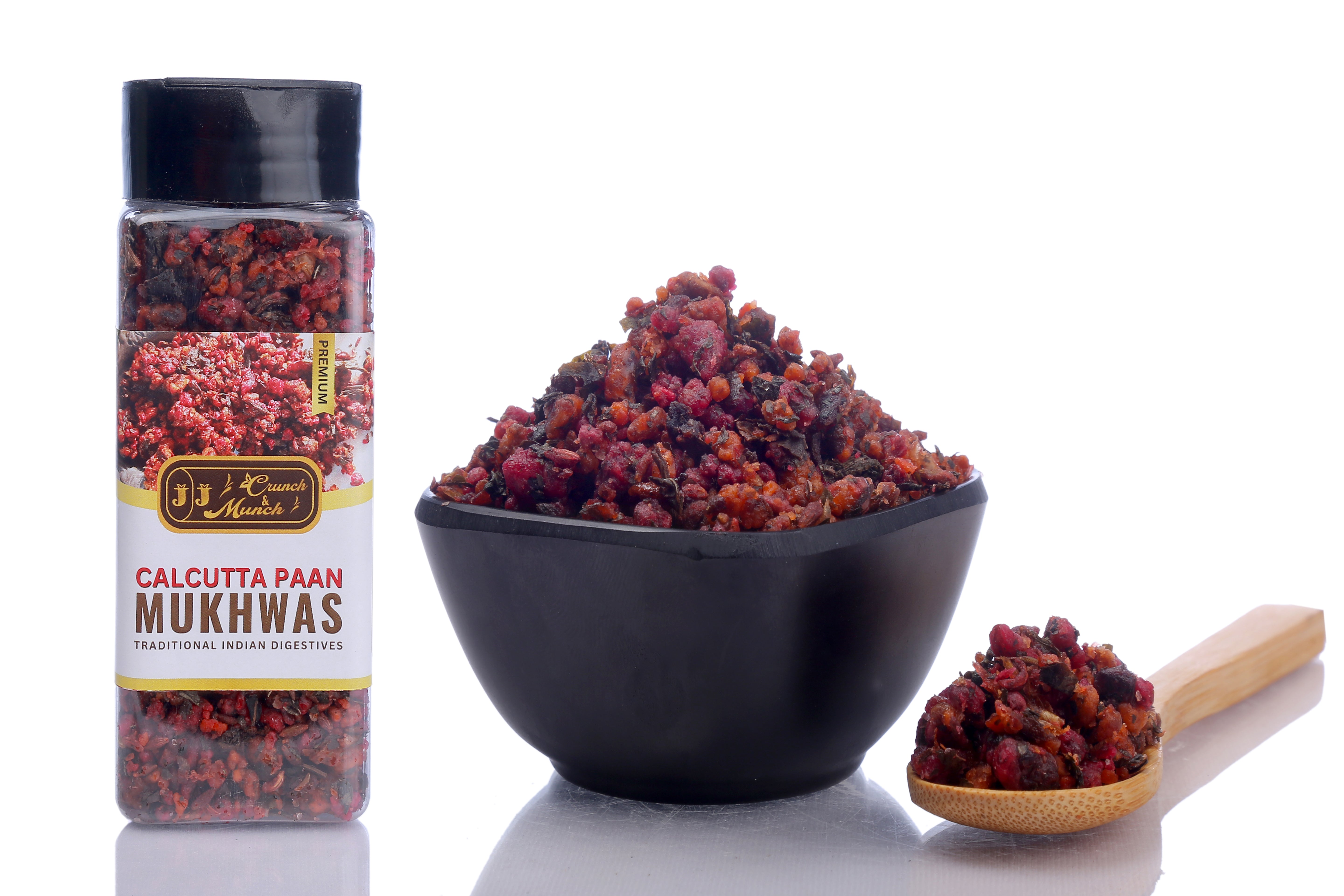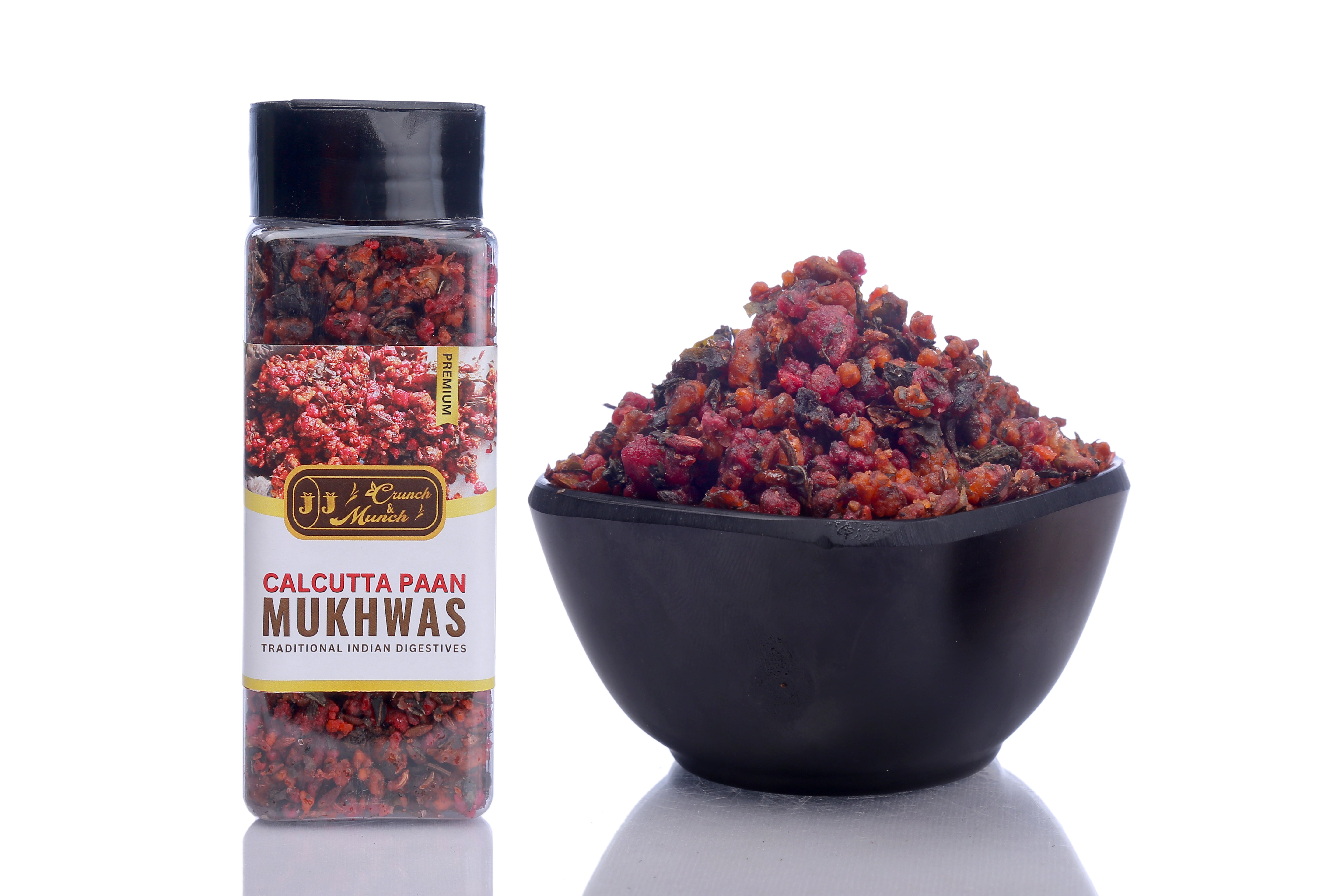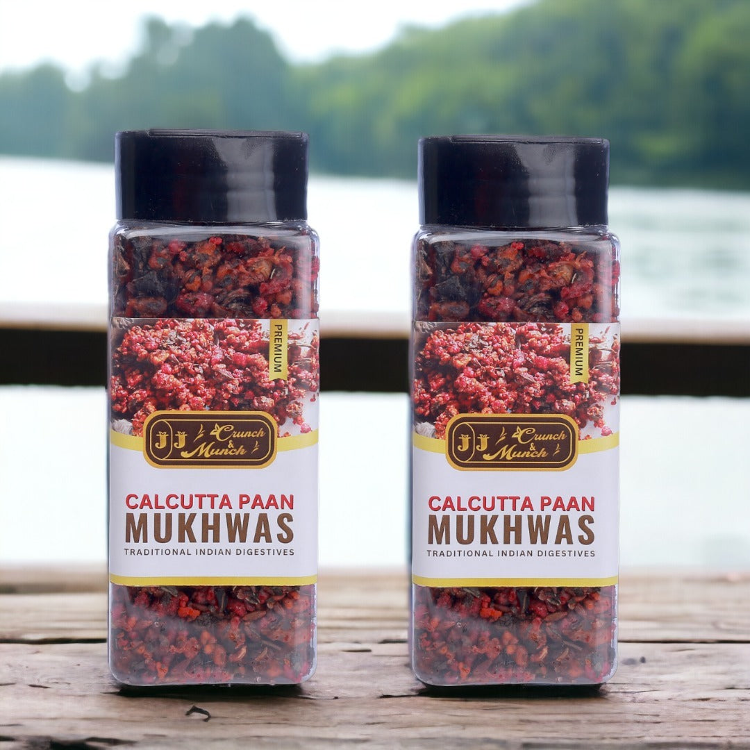 Elevate your post-meal experience with J J Crunch N Munch Calcutta Pan Mukhwas, a delightful and aromatic mouth freshener inspired by the iconic flavors of Calcutta Pan. Perfectly crafted for digestion and freshness, this premium blend combines the finest ingredients to tantalize your taste buds while leaving you with a burst of refreshing aroma.